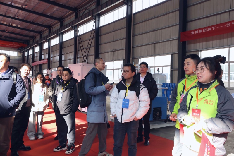 1月22日上午,與會嘉賓先后走訪江蘇宏博集團旗下宏博、臺氧、臺氫及蘇氣工廠車間、企業(yè)發(fā)展脈絡的 “時光長廊”,各方對公司在智能制造體系建設、裝備水平提升及質(zhì)量管控優(yōu)化等方面取得的成果給予高度關(guān)注。